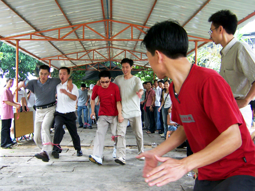 在動(dòng)工燒烤之前有2項(xiàng)激情熱身賽----拔河比賽、雙人接力賽,員工根據(jù)事先安排分為A、B、C、D四組。比賽緊張而激烈地進(jìn)行著,竟?fàn)幍膱?chǎng)面不亞于奧運(yùn)會(huì)。裁判嚴(yán)肅公正,隊(duì)員也奮力拼搏。尚未比賽的兩組充當(dāng)啦啦隊(duì),加油!加油!加油!多么激動(dòng)人心的吶喊。不多時(shí)已有一組決出了勝負(fù),她們高興地歡呼著。經(jīng)過最后的角逐,勝利者產(chǎn)生了,你看他們笑的多開心,勝利的喜悅都寫在了臉上。接下來的雙人接力賽同事們也樂在其中,配合默契,互相協(xié)助共同邁著大步向前沖,激發(fā)出團(tuán)隊(duì)的合作精神以及更高昂的工作熱誠和拼搏創(chuàng)新的動(dòng)力,使團(tuán)隊(duì)更富凝聚力。