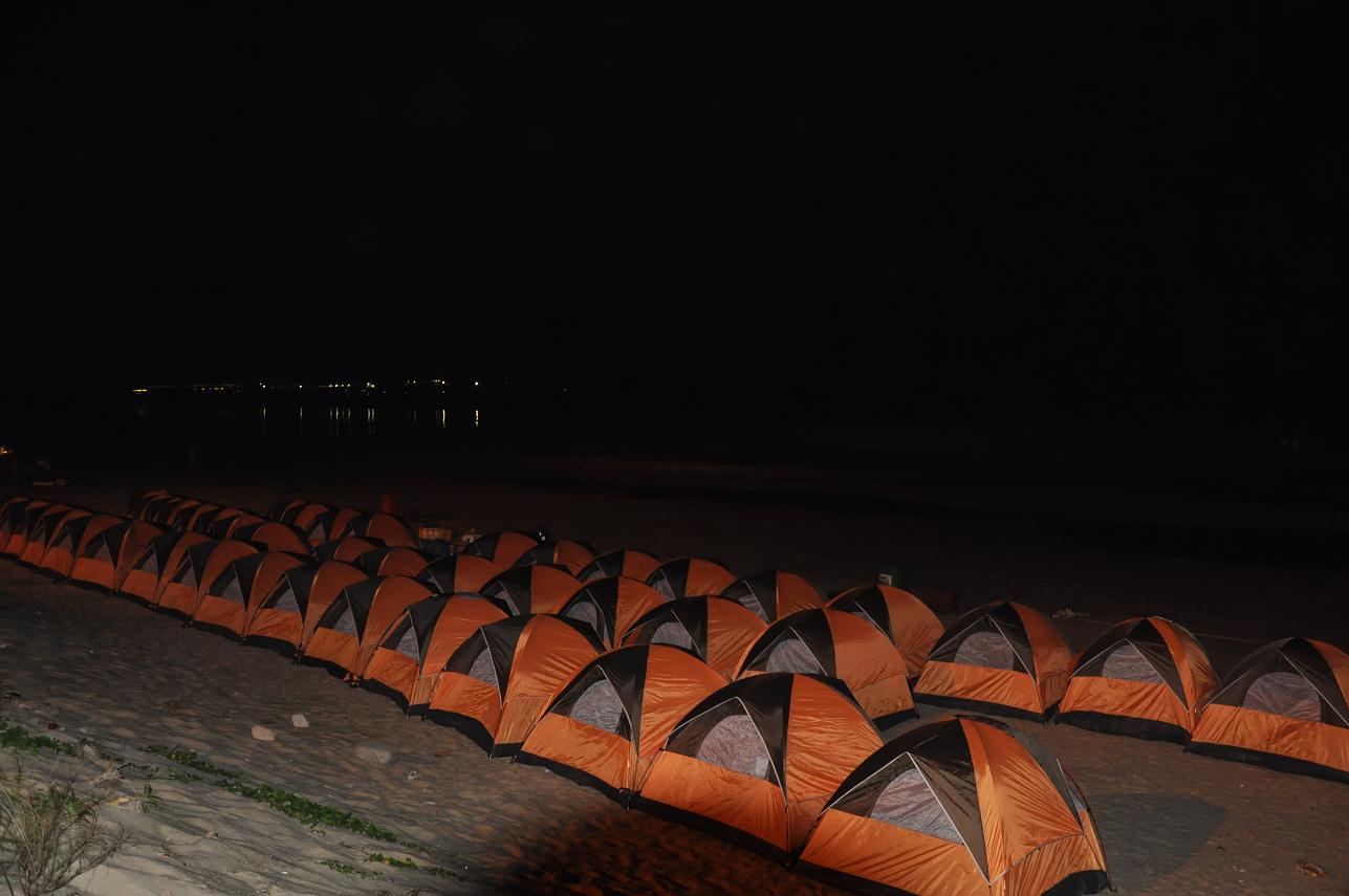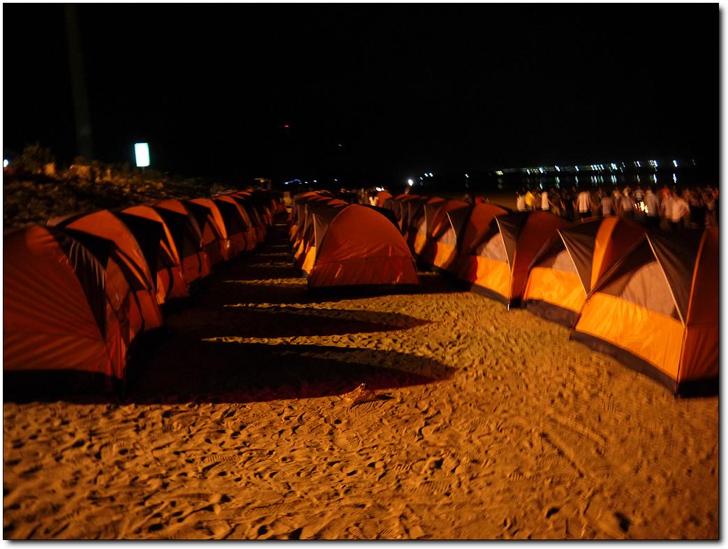 快樂(lè)的時(shí)光總是過(guò)得特別的快,轉(zhuǎn)眼間已到了23:00點(diǎn)了,這海灘上留下我們的足跡留下我們的歡聲笑語(yǔ),但美好的記憶和愉快的心情被帶回來(lái)了,而且還將延緩著。23:00點(diǎn)大家興高彩烈的情緒中結(jié)束了燒烤與戲水游戲,各自回到自己的帳篷,自由活動(dòng),有的開(kāi)始休息養(yǎng)好精神等待明天的到來(lái),有的幾個(gè)一塊玩牌。我靜靜躺下聽(tīng)著窗外的徐徐的海風(fēng)聲。這時(shí),感覺(jué)很疲倦的作用下,我開(kāi)始有了困意,最先鉆進(jìn)帳篷休息了,在帳篷里,聽(tīng)著他們調(diào)侃著,也跟著竊笑,打開(kāi)手機(jī)上網(wǎng)和在線的群友聊聊,大約一個(gè)小時(shí)我就下線了,我閉上雙眼,感覺(jué)真愜意啊,在海邊里,我們以天為房,以地為床,跟大地零距離的貼近著,聆聽(tīng)著海水的天籟之聲,聞著泥土的芳香,遠(yuǎn)離喧鬧的城市,在這靜靜的沙灘上,盡情的感受著大自然的氣息。這是多么令人心曠神怡的美好生活?。?duì)于久居城市的人來(lái)說(shuō),面對(duì)現(xiàn)代生活的壓力,露營(yíng)對(duì)于我們來(lái)說(shuō)多具有誘惑力啊。實(shí)際上,這份頗具個(gè)性化和具有代表性的戶外活動(dòng),讓我們充分回歸自然,親近自然。