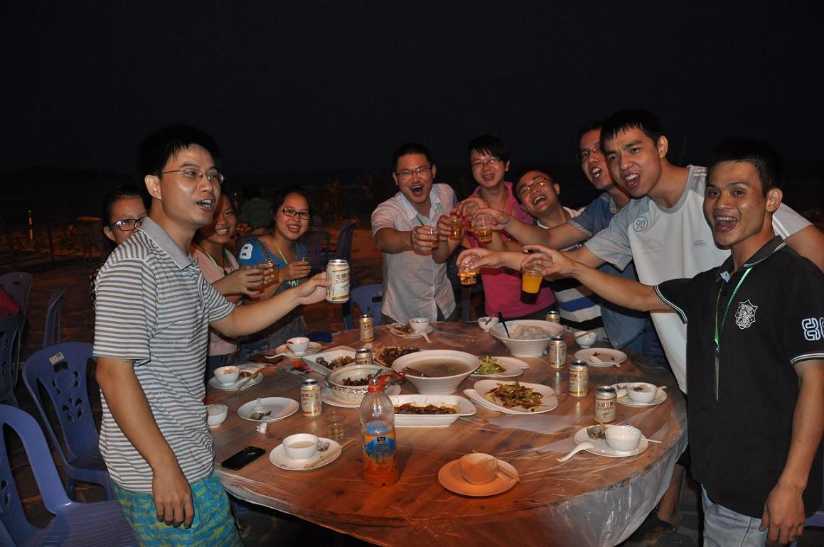 經(jīng)過(guò)公司的精心安排與計(jì)劃,在9-6日中午2點(diǎn)半共100多人乘坐兩輛旅游車到漳州六鰲目的地,一路我們談笑風(fēng)生,此時(shí)大家都表現(xiàn)格外的輕松,從各方面都能感受到公司給予的這次福利,給大家?guī)?lái)了無(wú)此的喜悅!大家都發(fā)自內(nèi)心的感謝公司給予大家提供的這次機(jī)會(huì)。一路上我的心情很緊張、又很期待。傍晚五點(diǎn)多我們到達(dá)六鰲時(shí),雖然是傍晚時(shí)分,但還是能感受到夏天海邊清涼。一下車,放眼望去一片開(kāi)闊的金沙海灘。沙灘保存著自然的美貌,沒(méi)有一點(diǎn)浮夸,一點(diǎn)做作。海灘都美得不自然,不自信。就像整容美女那樣不純真,不大氣,骨子里永遠(yuǎn)都透著卑微和恐慌。到達(dá)目的地的第一件事情就是拍我們公司的合照。在沙灘上拍下我們公司全體員工合影照,也是為我們公司企業(yè)文化建設(shè)帶來(lái)痕跡。接下來(lái)我們要在海灘上搭帳篷的,但是誰(shuí)都不知道半夜?jié)q潮會(huì)漲到哪里,當(dāng)時(shí)還半開(kāi)玩笑的說(shuō)也許當(dāng)明天早上醒來(lái)就發(fā)現(xiàn)自己已經(jīng)在海中央了呢?后來(lái)我們就把搭帳篷的地點(diǎn)定在了海灘的最上面了。我趁大家都還沒(méi)選好地方的時(shí)候就選了一塊最平的地方來(lái)搭帳篷,而且我和賢虎一個(gè)帳篷,這樣當(dāng)然是為了方便晚上的時(shí)候說(shuō)話了。一直以為搭帳篷是件挺麻煩的時(shí)候,可是真的要自己動(dòng)手的時(shí)候發(fā)現(xiàn)原來(lái)沒(méi)有想象中的那么困難,只是看著他們搭了一遍就學(xué)會(huì)了,搭完帳篷自己也輕輕的松了一口氣。